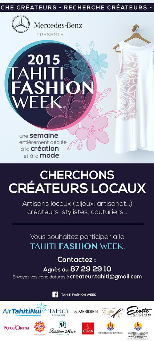 Tahiti Infos remercie Alberto Vivian et informe le public que le casting pour la Tahiti Fashion Week a démarré. Il a pour but de recruter mannequins femme et homme ainsi que des créatrices et créateurs locaux. Toutes les infos sur la page FB Tahiti Fashion Week.