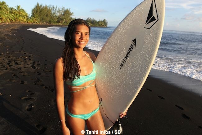 Le 23 avril 2015. En marge du dernier Papara Pro Surf Festival, Tahiti Infos a pu interviewer la jeune Vaimiti Teiefitu et prendre quelques clichés sans artifices. La jeune femme surfe depuis un an, elle fait également du fitness, du yoga et respire la santé. C’est Lorenzo Avvenenti son copain, qui rappelons-le au passage est le Taapuna Master 2013, qui lui a transmis le virus du surf.