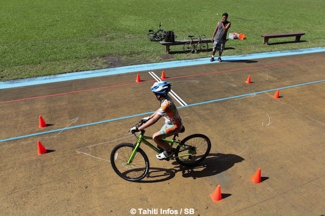 « J’ai commencé avec mon beau père sur la route en France puis on en a fait ici. Petit à petit, je me suis amélioré. On a fait la montée du Tahara’a ensemble, on fait de plus en plus de kilomètres. Le mercredi et le vendredi on vient ici à Fautaua pour les entraînements de piste.