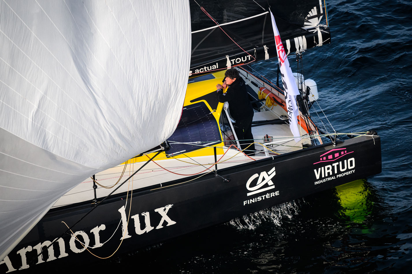 "On sait que plus on passe le Pot-au-Noir dans l'ouest, plus il est étroit et donc facile à traverser en principe. Il se trouve que la stratégie de ces derniers jours nous a amené à faire énormément de gain de ce côté ce qui, d'une certaine manière, nous simplifie les choses aujourd'hui", s'est félicité Lunven.