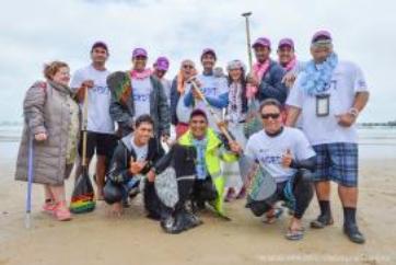 Les sables d'Olonne, le 16 mai 2015 - Malgré les bouleversements de jeudi dus aux conditions météo obligeant la course à faire demi-tour aux Sables d'Olonne, les spectateurs sont tout de même venus nombreux pour le départ et l'arrivée de l'étape 2 depuis la plage des Sables. Le gagnant de l'étape du jour est l'équipage polynésien EDT Tahiti. La journée s'est terminée agrémentée de colliers de fleurs, de musique et de danse.