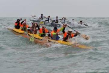 La foule est venue nombreuse dès 10h ce matin pour assister au beau spectacle du départ de l'étape aux Sables d'Olonne. Les pirogues en provenance du port ont accosté les unes après les autres sur la grande plage des Sables pour la mise en place du rituel de départ. A 10h, les rameurs se sont tous réunis pour la prière traditionnelle prononcée par Franki Tefaatau, coureur de l'équipe de Fontenay le Comte. A suivi le Haka pour booster les équipages. Le départ de la course a été donné à 10h15 par le Maire des Sables d'Olonne muni d'un drapeau aux couleurs de la ville. A la façon des 24h du Mans, les barreurs de chaque équipage ont couru jusqu'à leur pirogue avant de s'élancer en mer !