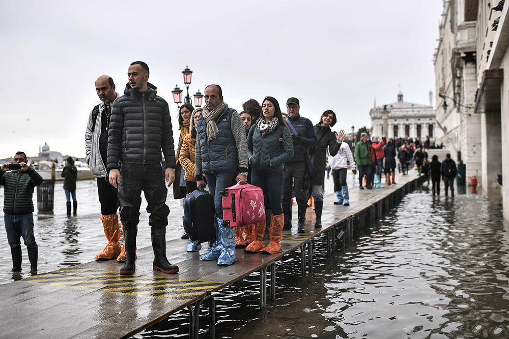 Venise est régulièrement touchée par le phénomène des "acque alte", pics de marées particulièrement prononcés qui provoquent la submersion d'une partie plus ou moins grande de la zone urbaine insulaire.