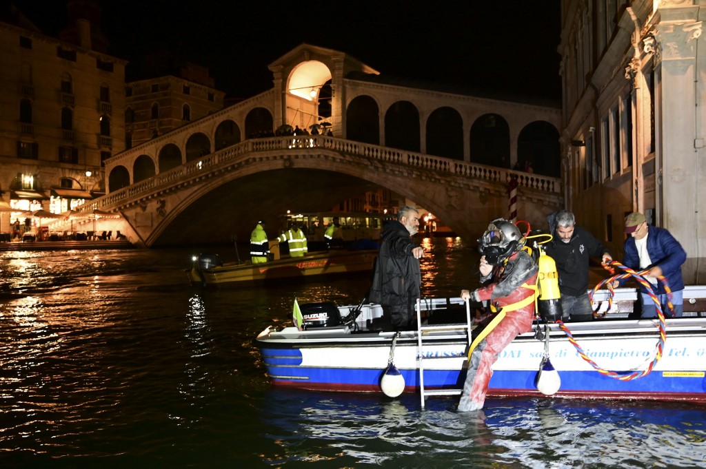 Venise, Italie | AFP | lundi 04/11/2019 - Les gondoliers de Venise ont troqué dimanche soir leur chapeau à ruban rouge pour des scaphandres et ont plongé pendant six heures dans le Grand Canal pour récupérer les objets en tous genres qui s'y amoncellent, ont constaté des journalistes de l'AFP.