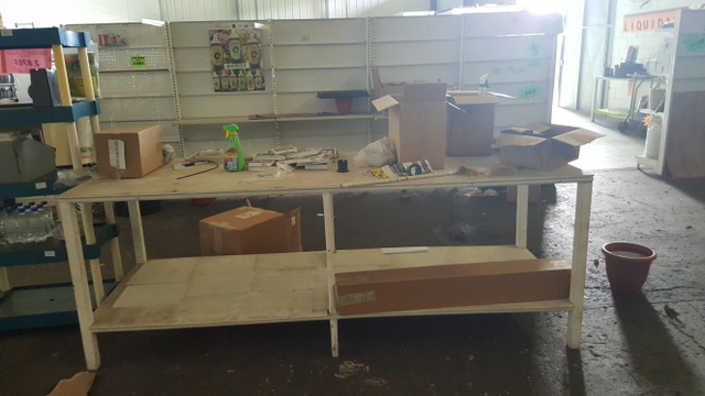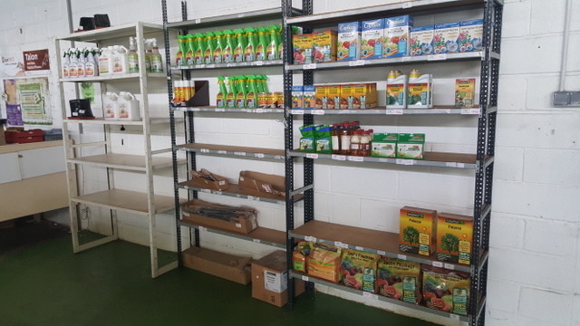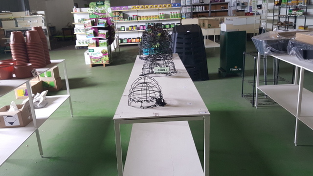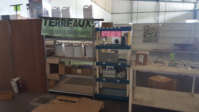 Vous retrouverez plusieurs matériaux : étagères, mobiliers de bureau, ordinateur, photocopieur, coffre-fort, divers ustensiles et produits de jardinage et élévateur Kia Plateau 2007 (épave).