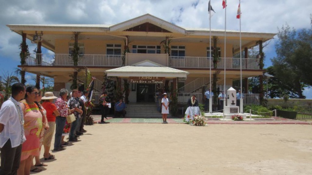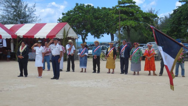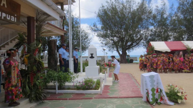 Première femme à occuper cette fonction de Chef de la Subdivision administrative des îles Australes, Marie Baville a d’abord été accueillie à l’aéroport par le maire, Fernand Tahiata, puis à la mairie de Mataura, où la population, les élus locaux, les représentants des services de l’Etat et du Pays, lui ont réservé un accueil particulièrement chaleureux et émouvant. Lors de la cérémonie de levée des couleurs, le personnel communal lui a offert une magnifique interprétation des hymnes, polynésien et national. La tradition républicaine a ensuite été respectée avec le dépôt d’une gerbe au Monument aux Morts.
