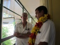Après une rencontre avec le Directeur et les jeunes de la Maison Familiale Rurale (MFR), un apéritif à l’initiative de l’Adie a permis au Haut-Commissaire d’échanger avec des porteurs de projets financés et accompagnés par l’association. Depuis son ouverture en 2011, l’Adie a financé près d’une cinquantaine de projets (dont 20 créations nettes d’entreprise) autour d’activités traditionnelles telles que la pêche, le fa’apu, la coprahculture, la restauration, ainsi que des projets novateurs autour des nouvelles technologies. La boutique de prêt-à-porter Flashback et le snack Pilou-Pilou qui ont ouvert leurs portes en 2012 ont chaleureusement accueilli Jean-Pierre Laflaquière, qui a pu constater le dynamisme de ses nouveaux chefs d’entreprises. L’implantation de l’Adie s’inscrit pleinement dans le projet de reconversion économique qui mobilise Etat/Pays/Commune autour d’échanges de grande qualité.