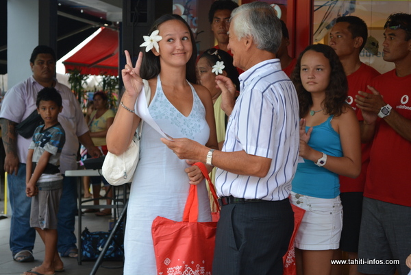 La remise des prix s'est déroulée à la boutique Vodafone du centre ville de Papeete. Les lots ont été remis aux gagnants par la direction du groupe et la cérémonie s'est poursuivie par une prestation des Knight Riders pour se terminer par une séance de dédicace réalisée par l'équipe des rameurs de Shell-Vodafone Va'a, qui vient tout juste de remporter la course Molokai à Hawaii pour la 8 ème année consécutive et s’apprête à affronter la Hawaiiki Nui va'a.