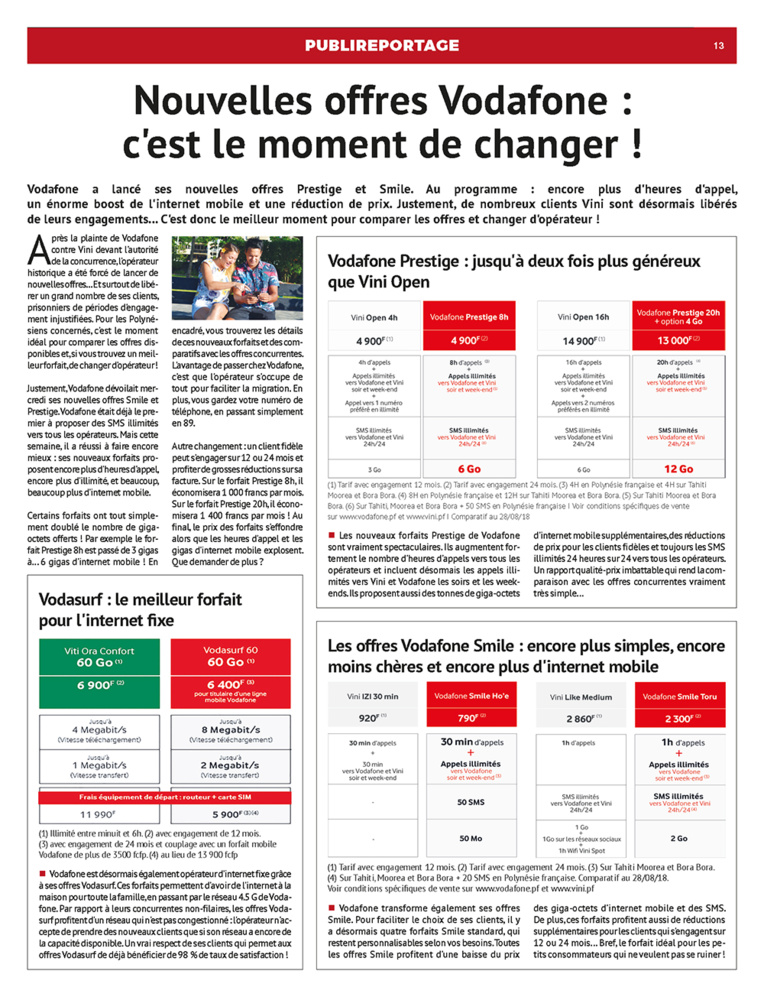 « On veut augmenter notre taux de pénétration (taille de la clientèle) d’au moins 20% sur Moorea. On a rendu la 3G encore plus rapide sur l’ensemble de l’ile, à part Haapiti. C’est le seul endroit qui nous manque pour installer la 3G. Sinon, notre offre internet est ici plus souvent rapide que celle nos concurrents » explique Patrick Moux, vice-président du groupe Vodafone.