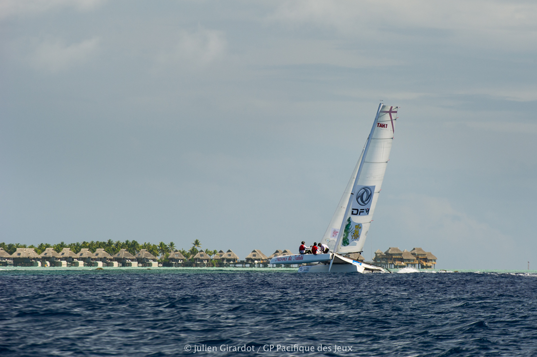 Comme lors de la précédente étape entre Huahine et Raiatea, les locaux ont pris l’avantage dès le départ. Et mise à part une petite frayeur à quelques mètres de la ligne d’arrivée, coincés dans une « bulle d’air », les Tahitiens ont remporté leur deuxième étape du Grand Prix Pacifique des Jeux relativement aisément.