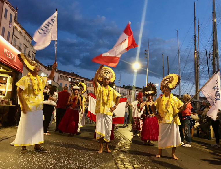 Le jeudi 4 octobre, l’équipage polynésien, accompagné des représentants de l’association Raiatea Regatta, du conseiller technique de la Fédération Tahitienne de Voile et de musiciens et danseurs de l’association toulonnaise Reva o Tahiti, habillés en costumes traditionnels, ont porté haut les couleurs de la Polynésie lors du défilé des équipages sur le port de Saint-Tropez. Cette parade haute en couleur, partant du village des Voiles jusqu’au podium du port de Saint-Tropez, a cette année résonné au son des toere, applaudis par un public venu nombreux.