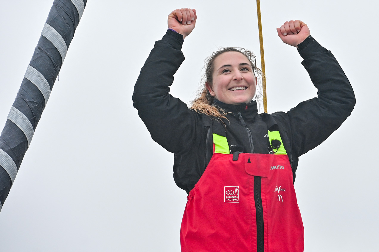 Son premier Everest des mers, bouclé à bord de l'ancien bateau à dérives de Jean Le Cam, elle l'a partagé jour après jour en vidéo: de sa joie de participer à la course, à ses peurs après avoir dû monter au mât ou à ses repas lyophilisés. Un grand succès.