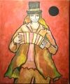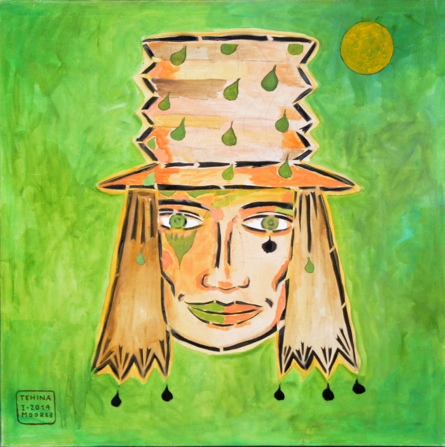 Le soleil, paradoxalement, n’a pas droit de cité dans les 32 œuvres qu’il présente cette année. L’ambiance est nocturne. C’est la lune qui trône dans le ciel. "Elle est dans mes toiles partout, depuis longtemps", rappelle Tehina. "Il y a toujours une lune dans un coin". L’astre est puissant, il hante un triptyque et devient tantôt, lune rouge, lune bleue, lune noire.