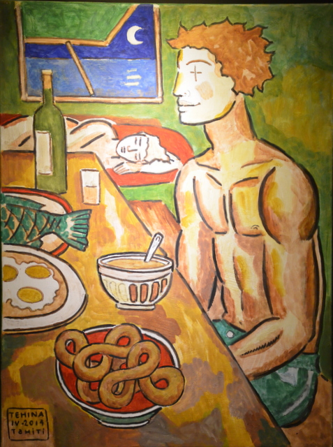 PAPEETE, 28 mai 2014 - Tehina expose jusqu’au 4 juin à la galerie Au chevalet : plongée au cœur de l’univers parallèle et coloré de ce peintre du voyage immobile.