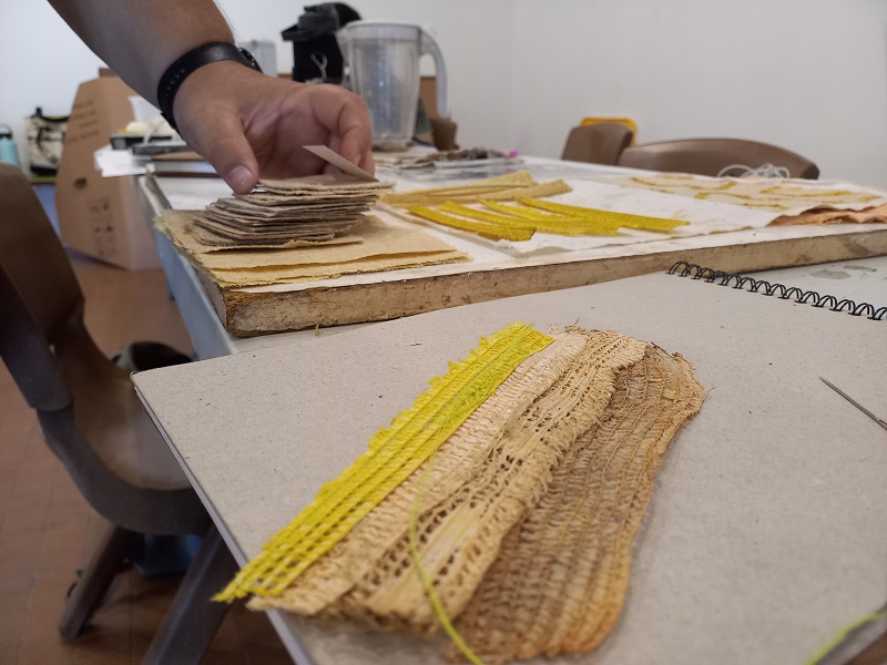“D’abord, ce workshop nous permet de travailler ensemble, tous les élèves de tous les niveaux. Ce qui est vraiment intéressant. Nous travaillons sur les fibres et, comme elles, nous nous mélangeons. D’un point de vue personnel, j’ai choisi pour sujet de mémoire le papier en tant que matériau à base de fibres locales. J’ai commencé à y réfléchir dès la deuxième année car ce sujet permet de concilier plusieurs aspects, la culture, l’agriculture, la production locale, les techniques modernes apportées pour produire un matériau qui répond à des besoins. Au-delà de la seule production, travailler ainsi nous amène à réfléchir, à nous questionner.”