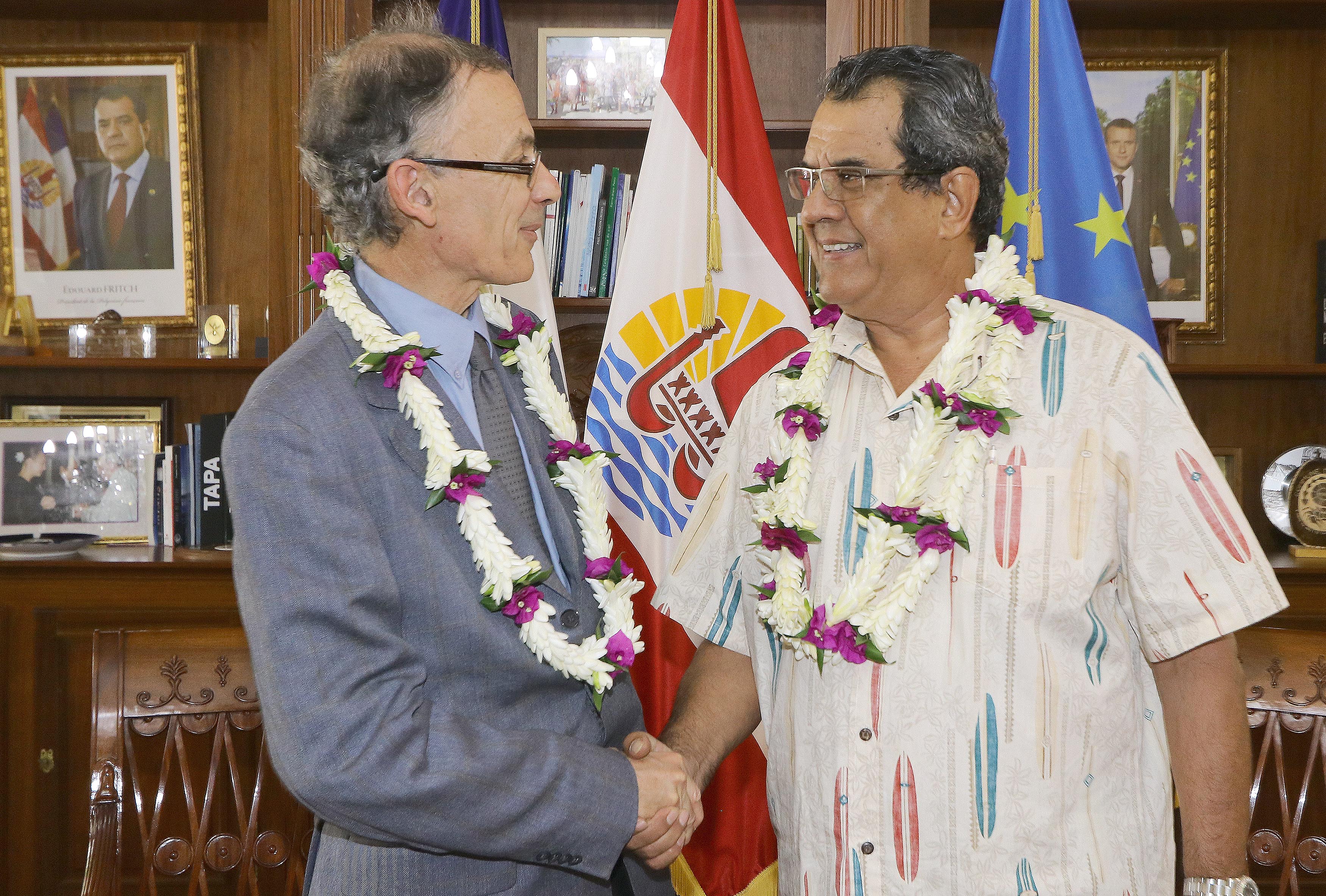 Edouard Fritch reçoit l’ambassadeur Hervé Dejean de la Batie 16/01/2019