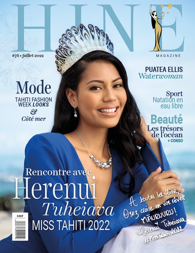 Le diadème de nacre s'est posé sur sa tête le 24 juin dernier, à la Une de ce numéro notre magnifique Herenui Tuheiava - Miss Tahiti 2022 parée des perles de JOY, partenaire officiel de Miss Tahiti, et habillée en bleu océan par gaellef. Rencontre avec notre nouvelle Miss Tahiti 👑