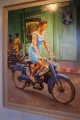 Ce samedi matin, à la galerie du Chevalet pour l’inauguration de Tahiti Vintage, Donatien Jumel se déplace, s’approche d’une toile qui plonge le visiteur sur une rue de cet autre temps. Au milieu de la rue, bordée de part et d’autre par quelques anciens véhicules, un scooter s’avance. Derrière lui, un homme est posté. “Imaginez cela aujourd’hui ! C’est impossible, les gens prenaient le temps, ils étaient posés.” Plus loin il y a la Jonque, ce bar-restaurant qui a fini brûlé en 1992. Il y a le Quinn’s, ce célèbre dancing qui a animé la vie nocturne de Papeete dans les sixties. Une institution où se concentrait toute la joie de vivre de l’île, un haut lieu de la bringue dont la réputation a dépassé les lagons. Il y a des jeunes filles sur une jeep, un hydravion déposant de rares passagers au milieu des eaux.